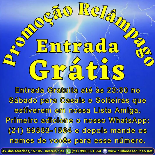 Adicione nosso WhatsApp (21) 99383-1564 em seus Contatos, mande os nomes para Lista Amiga e tenha a sua Entrada Grátis até às 23:30 em nosso Evento, aproveite e esclareça suas dúvidas sobre o Evento.